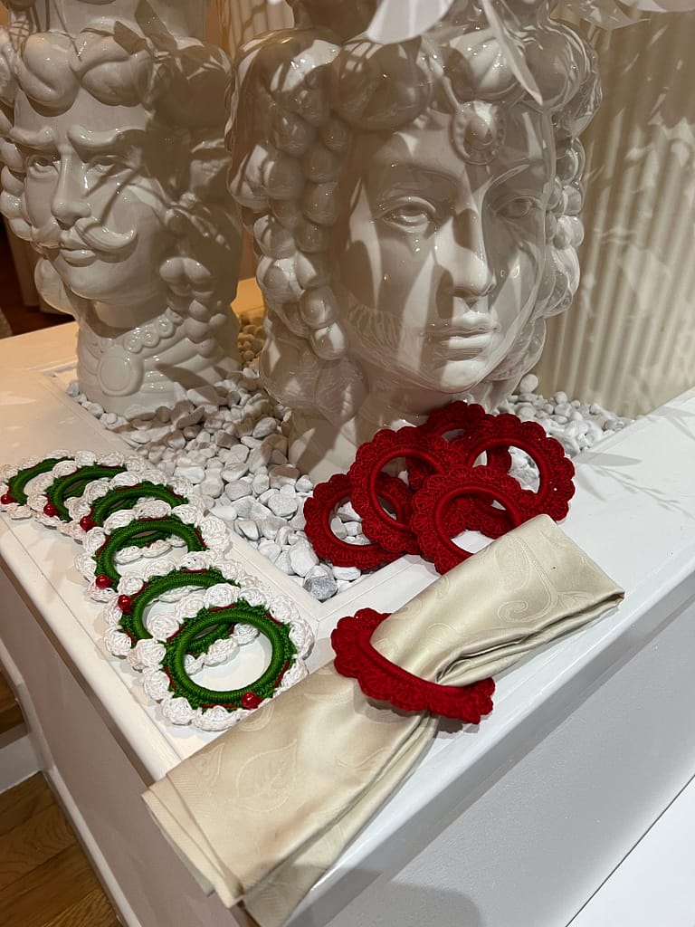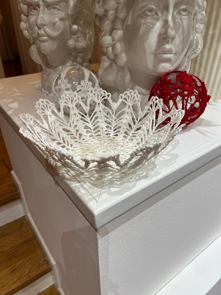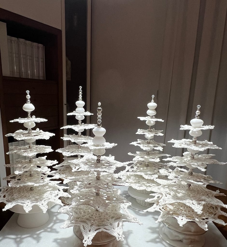 Albero creato con centrini bianchi in puro cotone di diverse misure e forme,